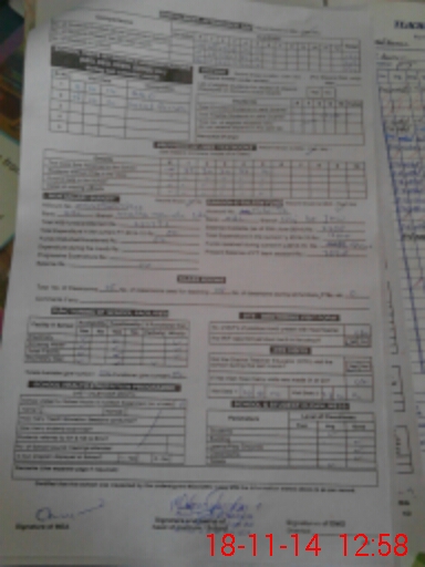 | Monitoring Date: 18-11-2014 | Start Time: 18-11-2014 12:30 PM | End Time: 18-11-2014 12:58 PM | Name of MEA: Mu**** Am**** Ra**** | |