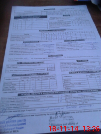 | School Visited by School Health & Nutrition Supervisor (No. of Visits) | 3 | Name1: | NIL | Name2: | NIL |