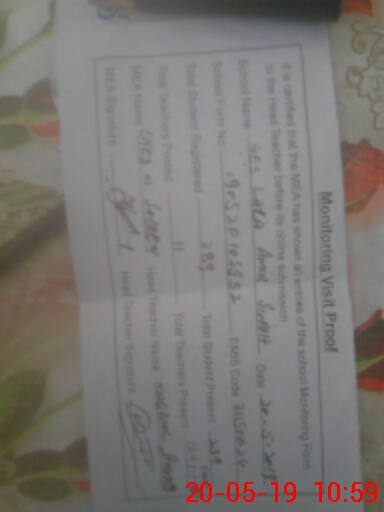 | Certified that this School was Inspected by the Undersigned MEA/DMO Today and the Information Stated Above is as Per Record. | |||||