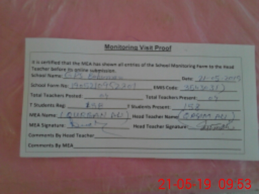 | Certified that this School was Inspected by the Undersigned MEA/DMO Today and the Information Stated Above is as Per Record. | |||||