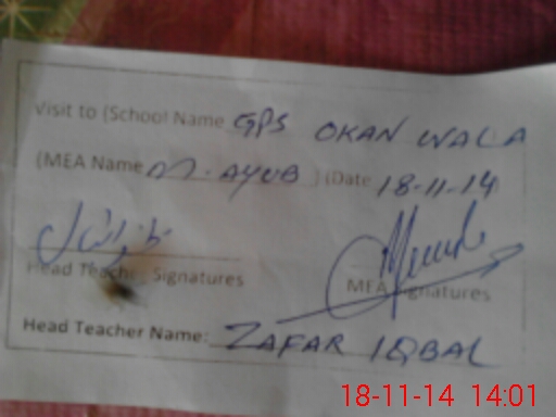 | EMIS Code: 38450290 | Name of School: GPS OKAN WALA | |||