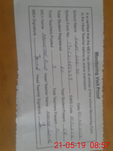| Certified that this School was Inspected by the Undersigned MEA/DMO Today and the Information Stated Above is as Per Record. | |||||