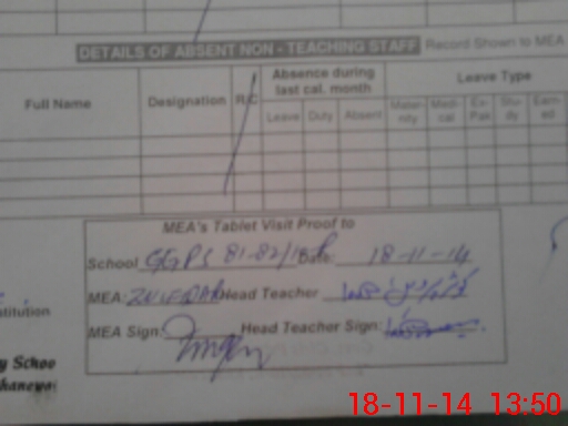 | Attendance Register | Head Teacher | MEA with School | Visit Proof |