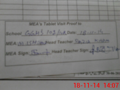 | Attendance Register | Head Teacher | MEA with School | Visit Proof |