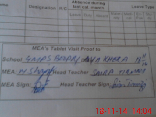 | Attendance Register | Head Teacher | MEA with School | Visit Proof |