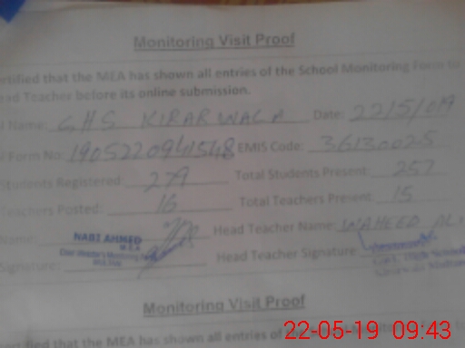| EMIS Code: 36130025 | Name of School: GHS KIRAR WALA MULTAN | |||