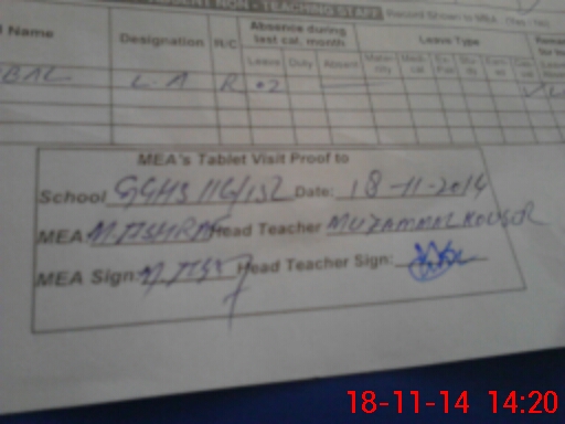 | Attendance Register | Head Teacher | MEA with School | Visit Proof |
