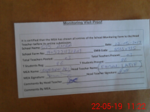 | Attendance Register | Head Teacher | MEA with School | Visit Proof |