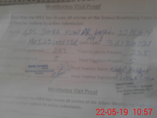| EMIS Code: 36130721 | Name of School: GPS JHOKE KUMAR WALI NO. 1 | |||