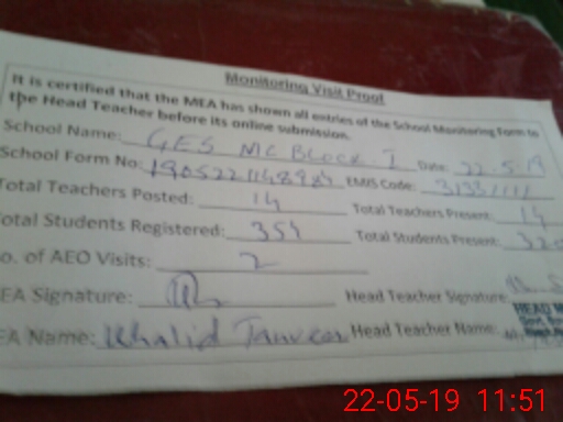 | EMIS Code: 31331111 | Name of School: GHS MC BLOCK NO. 1 | |||