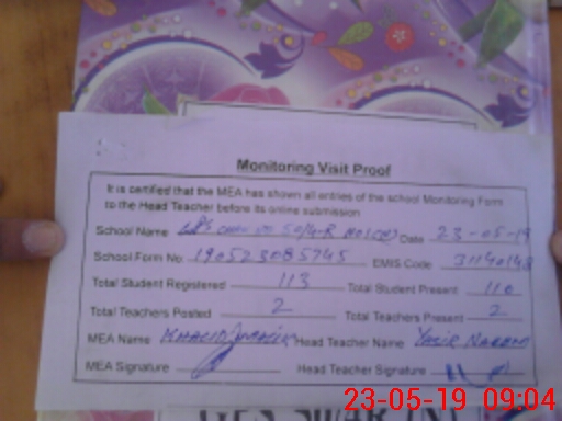 | Attendance Register | Head Teacher | MEA with School | Visit Proof |