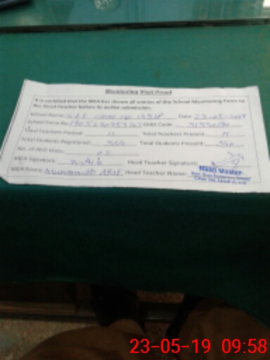 | Attendance Register | Head Teacher | MEA with School | Visit Proof |
