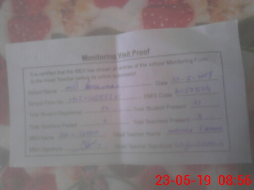 | Certified that this School was Inspected by the Undersigned MEA/DMO Today and the Information Stated Above is as Per Record. | |||||