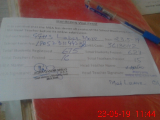 | EMIS Code: 36130112 | Name of School: GGHS LABER MORE MULTAN | |||