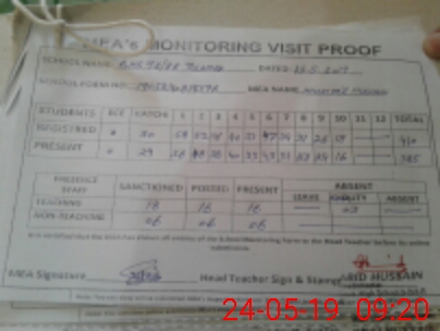 | Attendance Register | Head Teacher | MEA with School | Visit Proof |