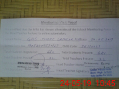 | Certified that this School was Inspected by the Undersigned MEA/DMO Today and the Information Stated Above is as Per Record. | |||||