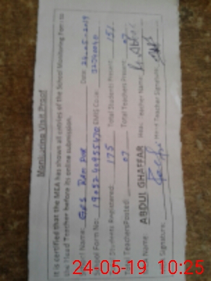 | Certified that this School was Inspected by the Undersigned MEA/DMO Today and the Information Stated Above is as Per Record. | |||||
