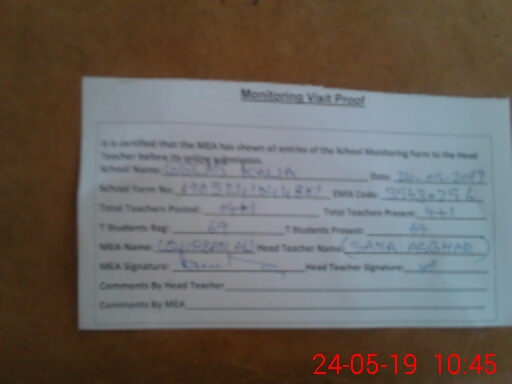 | Attendance Register | Head Teacher | MEA with School | Visit Proof |