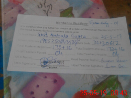 | EMIS Code: 36130612 | Name of School: GMPS AMBALA GAGRA | |||