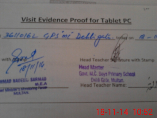 | EMIS Code: 36110162 | Name of School: GPS MC DEHLI GATE MULTAN | |||