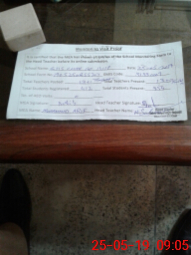 | Certified that this School was Inspected by the Undersigned MEA/DMO Today and the Information Stated Above is as Per Record. | |||||