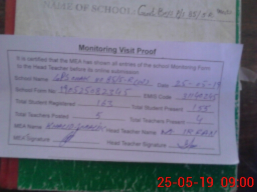 | Certified that this School was Inspected by the Undersigned MEA/DMO Today and the Information Stated Above is as Per Record. | |||||