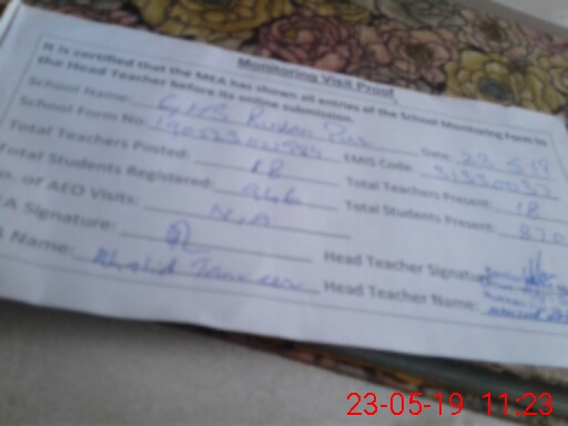 | Attendance Register | Head Teacher | MEA with School | Visit Proof |