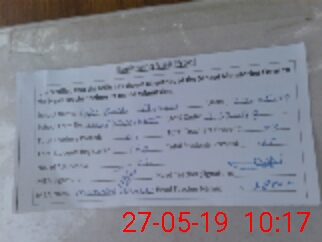 | Monitoring Date: 27-05-2019 | Start Time: 27-05-2019 09:53 AM | End Time: 27-05-2019 10:19 AM | Name of MEA: Mu**** Ah**** | |