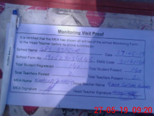 | Attendance Register | Head Teacher | MEA with School | Visit Proof |