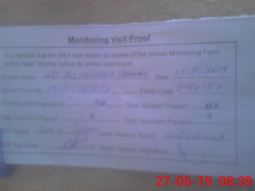 | EMIS Code: 31150150 | Name of School: GPS TAJ MEHMOOD CHAKUKA | |||