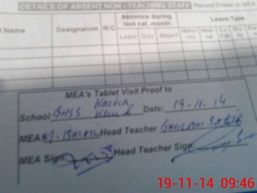 | Attendance Register | Head Teacher | MEA with School | Visit Proof |