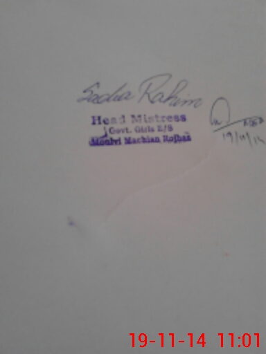 | Name: AS**** FI**** Designation: (School Headmaster's/Headmistress's) I nchaege Headmisstress Phone/Cell Number: 03**** |