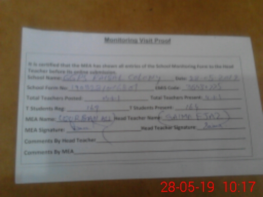 | Certified that this School was Inspected by the Undersigned MEA/DMO Today and the Information Stated Above is as Per Record. | |||||