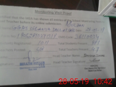 | EMIS Code: 36110034 | Name of School: GGHS ISLAMIA DOULAT GATE MULTAN | |||