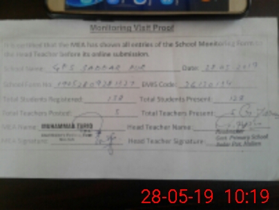 | EMIS Code: 36130134 | Name of School: GPS SADDAR PUR MULTAN MOUZA SADDAR PUR MULTAN | |||