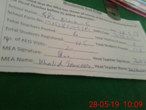 | Certified that this School was Inspected by the Undersigned MEA/DMO Today and the Information Stated Above is as Per Record. | |||||