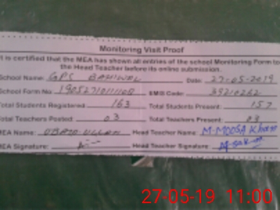 | EMIS Code: 39210262 | Name of School: GPS BAHIWAL | |||