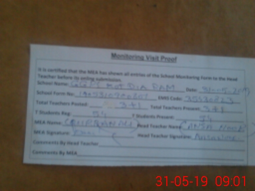 | Certified that this School was Inspected by the Undersigned MEA/DMO Today and the Information Stated Above is as Per Record. | |||||