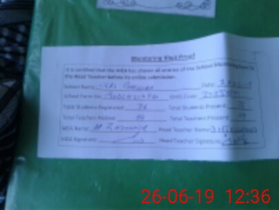 | Attendance Register | Head Teacher | MEA with School | Visit Proof |