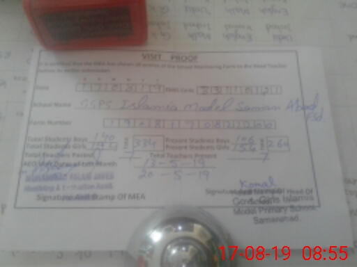 | EMIS Code: 33110121 | Name of School: GGPS ISLAMIA MODEL SAMANABAD | |||