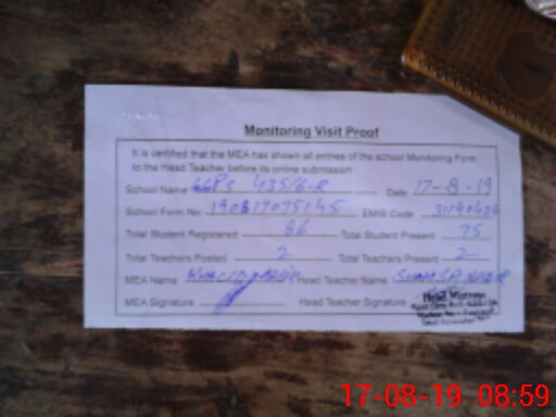 | Attendance Register | Head Teacher | MEA with School | Visit Proof |