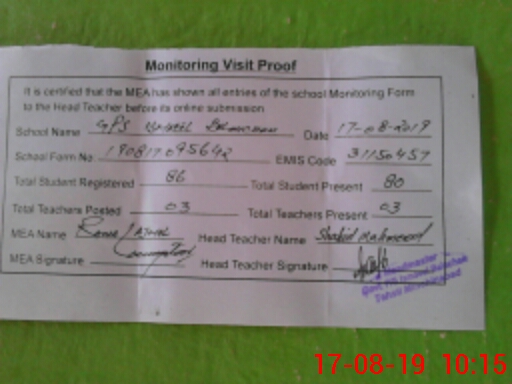 | EMIS Code: 31150457 | Name of School: GPS ISMAEEL BALOCHAN | |||