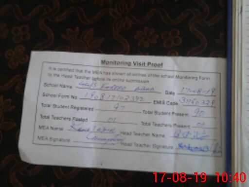 | Certified that this School was Inspected by the Undersigned MEA/DMO Today and the Information Stated Above is as Per Record. | |||||