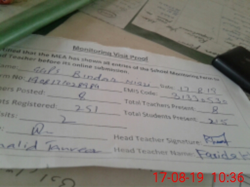 | Certified that this School was Inspected by the Undersigned MEA/DMO Today and the Information Stated Above is as Per Record. | |||||