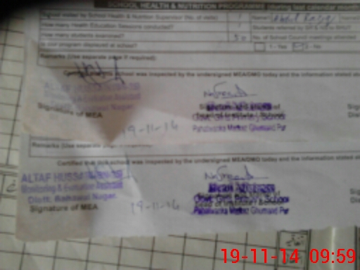 | Certified that this School was Inspected by the Undersigned MEA/DMO Today and the Information Stated Above is as Per Record. | |||||