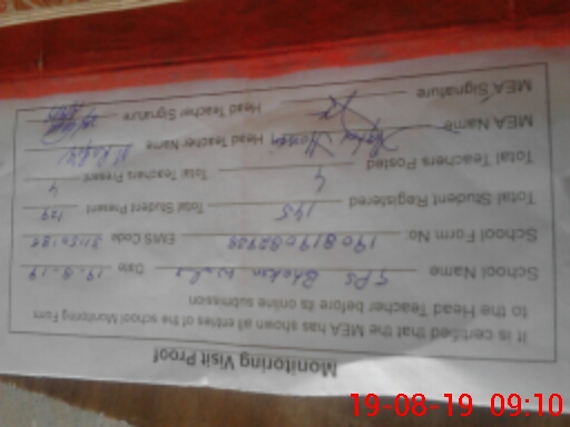 | Certified that this School was Inspected by the Undersigned MEA/DMO Today and the Information Stated Above is as Per Record. | |||||