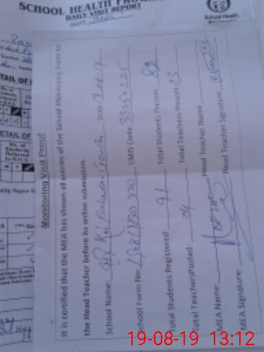 | School Visited by School Health & Nutrition Supervisor (No. of Visits) | 1 | Name1: | M Iftekhar | Name2: | Nil |