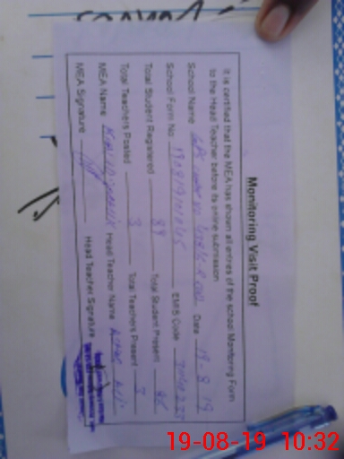 | Monitoring Date: 19-08-2019 | Start Time: 19-08-2019 10:10 AM | End Time: 19-08-2019 10:33 AM | Name of MEA: Mu**** Kh**** BN**** | |