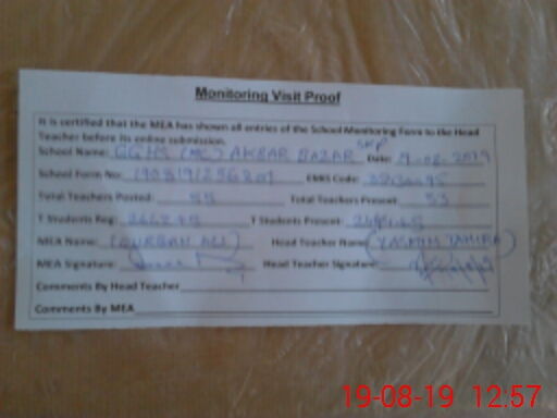 | Certified that this School was Inspected by the Undersigned MEA/DMO Today and the Information Stated Above is as Per Record. | |||||