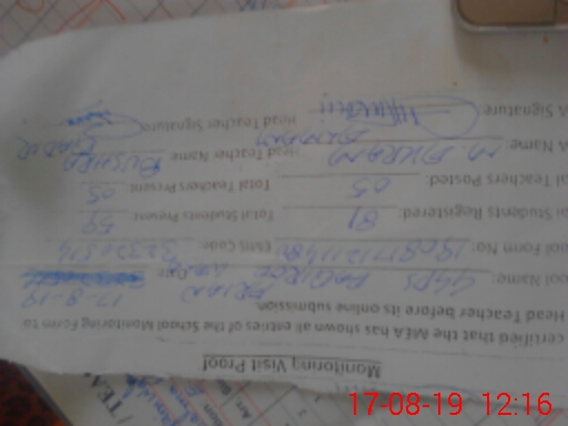 | Certified that this School was Inspected by the Undersigned MEA/DMO Today and the Information Stated Above is as Per Record. | |||||